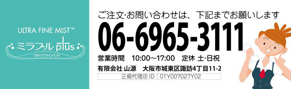 ※「ウルトラファインミスト」は、株式会社サイエンスの登録商標です。「ミラブル」及び「Mirable」は株式会社サイエンスの商標です。類似品・模倣品にご注意下さい。