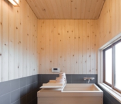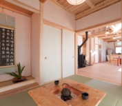 徳島県阿南市の板倉の家モデルハウスです。板倉構法を考案、確立した筑波大学の安藤邦廣教授が携わり、設計は里山建築研究所、施工は板倉の家を熟知した地元の大工さん。