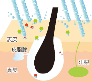 バブルミスト(ミスト水流)は、すぐれた洗浄力を持つウルトラファインバブルをミストで毛穴まで届けます。